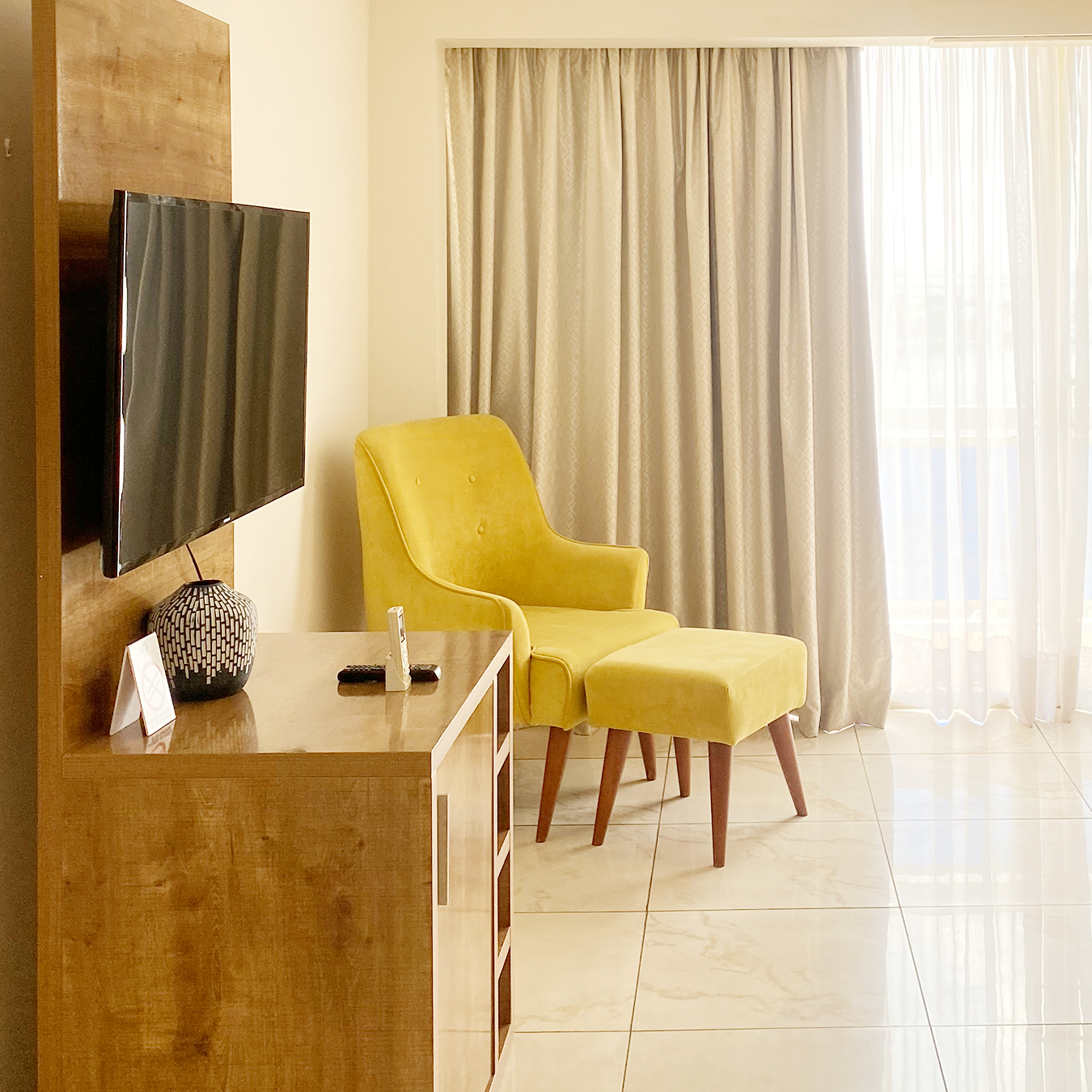 - Équipements : Climatisation, Machine à café, Navette, Parking, Piscine, Salle de sport, Télévision à écran plat, WiFi
